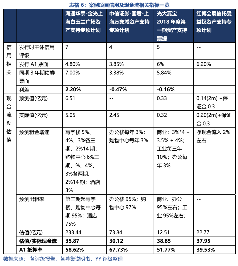 整體而言,取CMBS實際發行主體相近時間發行的3年期左右公司債或中期發行票面利率 – CMBS發行票面利率所得利差,體現CMBS的抵押和增信措施對債項的增信效果(或至少一級投資者認可的增信效果),一般而言>0的程度越高表示資產的增信程度越好。