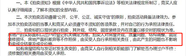 通俗地來說,法院的意思就是,“我只負(fù)責(zé)拍賣,房子有什么問題你要自己看清楚,住進(jìn)去是啥樣就是啥樣,出了問題自己負(fù)責(zé),考慮不好就別拍,概不退貨。”