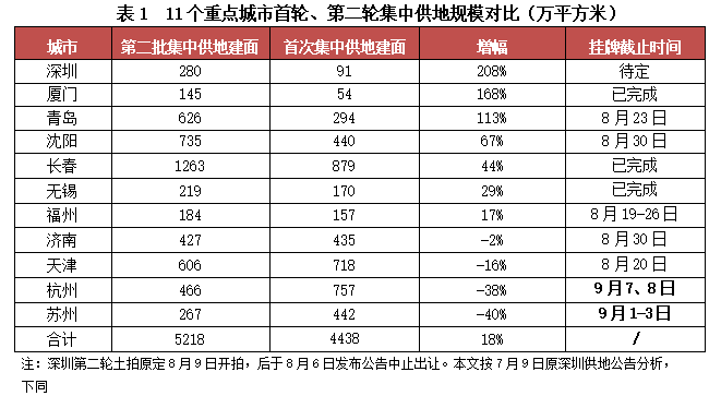 規(guī)模變動(dòng):第二輪集中供地規(guī)模高于首輪