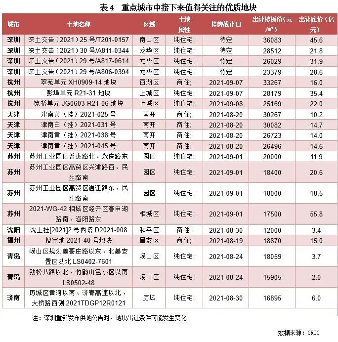 綜上來看,大部分城市第二輪集中供地掛牌量較首輪增加,尤其是深、廈、青供應(yīng)量均實(shí)現(xiàn)翻番。從供地質(zhì)量來看,平均起始樓面價(jià)與首批也基本持平,但是考慮到首批集中供地市場(chǎng)熱度較高的杭州、無錫、蘇州等多城土拍規(guī)則升級(jí),出臺(tái)了保障金門檻升級(jí)、“競(jìng)品質(zhì)”試點(diǎn)、現(xiàn)房銷售、競(jìng)配建調(diào)整、溢價(jià)率上限下調(diào)等諸多新規(guī)。并且杭州、南京等市也進(jìn)一步收緊了落戶和購(gòu)房新政。這樣來看,重點(diǎn)城市第二輪集中供地的熱度將有所下滑。