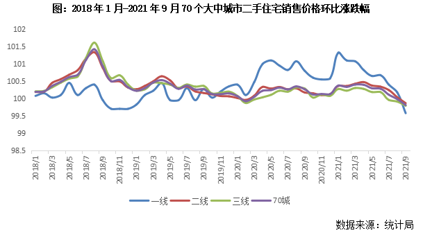 統計數據顯示,9月70個大中城市二手住宅銷售價格年內首次轉降,環比下跌0.2%。具體而言,一線城市二手住宅銷售價格環比由上月上漲0.2%轉為下降0.4%,北京、上海和廣州環比均由升轉降,深圳環比跌幅擴至0.5%。二線城市二手住宅銷售價格環比由上月持平轉為下降0.1%,近7成二線城市環比轉降,哈爾濱暫以0.7%的環比跌幅居首。三線城市二手住宅銷售價格環比跌幅擴至0.2%,近8成三線城市環比皆降,牡丹江環比跌幅多達0.8%。