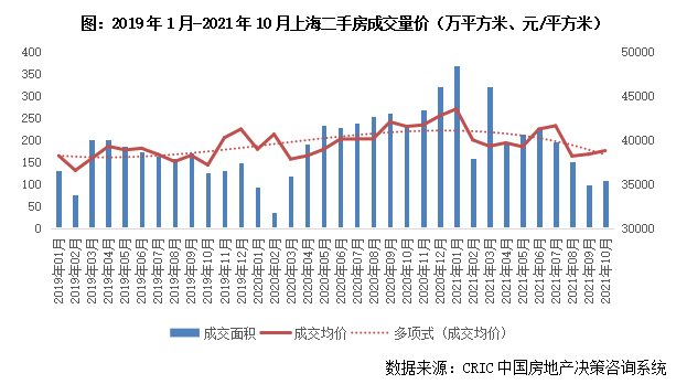 7月9日,上海以真實價格對每套房源進行核驗,未通過核驗禁止掛牌。8月6日,上海二手房貸款執行“三價就低”原則。受此影響,上海二手房市場持續轉冷,10月成交面積109萬平方米,環比增長11%,同比仍下降54%。成交均價38811元/平方米,環比結構性微漲1%,同比仍下跌7%。1-10月,上海二手房累計成交2040萬平方米,同比增長8%。