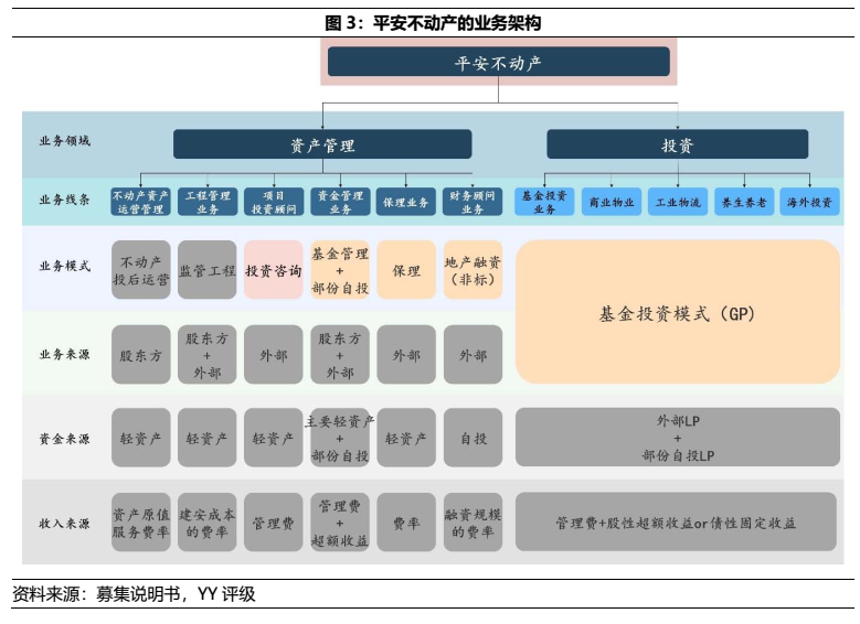 平安不動(dòng)產(chǎn)有限公司由平安系相關(guān)企業(yè)100%控股,分別被平安人壽、平安財(cái)險(xiǎn)、平安科技和平安融資租賃等公司持股。作為中國(guó)平安的不動(dòng)產(chǎn)投資運(yùn)營(yíng)平臺(tái),平安不動(dòng)產(chǎn)的主要業(yè)務(wù)是基于搭建平安系的不動(dòng)產(chǎn)投資基金管理業(yè)務(wù)而設(shè)。