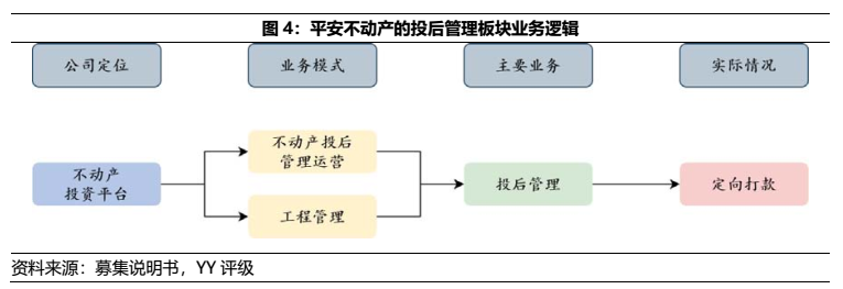 資產(chǎn)管理的不動(dòng)產(chǎn)資產(chǎn)運(yùn)營(yíng)管理和工程管理業(yè)務(wù)均屬于平安不動(dòng)產(chǎn)的“被動(dòng)收入”投后管理板塊。作為中國(guó)平安的專屬不動(dòng)產(chǎn)投資平臺(tái),投后板塊的持續(xù)運(yùn)營(yíng)基礎(chǔ)建立在“平安在,我就在”的聯(lián)動(dòng)原則上,無(wú)疑成為平安不動(dòng)產(chǎn)的被動(dòng)收入來(lái)源。