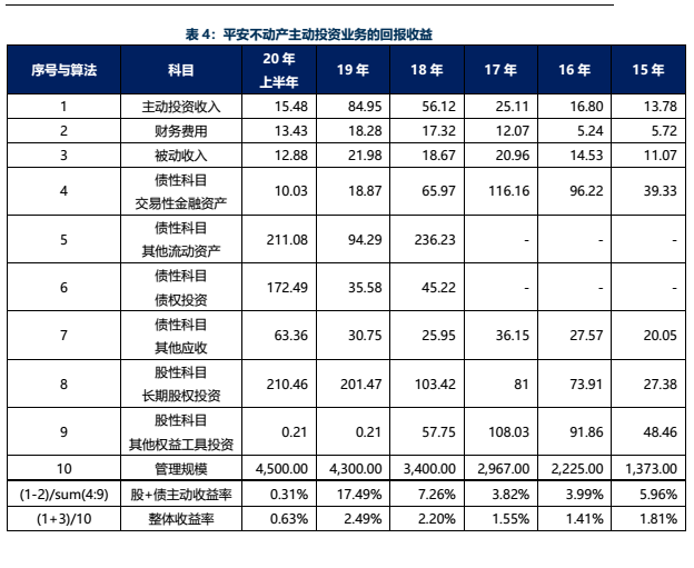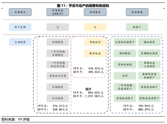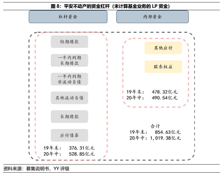 根據(jù)平安不動(dòng)產(chǎn)20年中報(bào)公示的主要債權(quán)投資(未完全披露)收益5.90%,經(jīng)扣除平安不動(dòng)產(chǎn)相關(guān)投后管理費(fèi)用和成本費(fèi)用,恐怕無(wú)法有效覆蓋資金成本。因此,布局股性地產(chǎn)投資業(yè)務(wù)和充份運(yùn)用杠桿成為了平安不動(dòng)產(chǎn)提升收益率的必要手段。