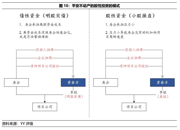 而導(dǎo)致項(xiàng)目周轉(zhuǎn)率低的主因,除了底層投資標(biāo)的和項(xiàng)目合作方不靠譜外,大概率是股性資金觸發(fā)了合作方人性的弱點(diǎn)“低資金壓力導(dǎo)致項(xiàng)目去化動(dòng)機(jī)較小”。(若為股+債權(quán)模式,平安5.90%的利息成本對(duì)于地產(chǎn)開發(fā)商仍較低廉)