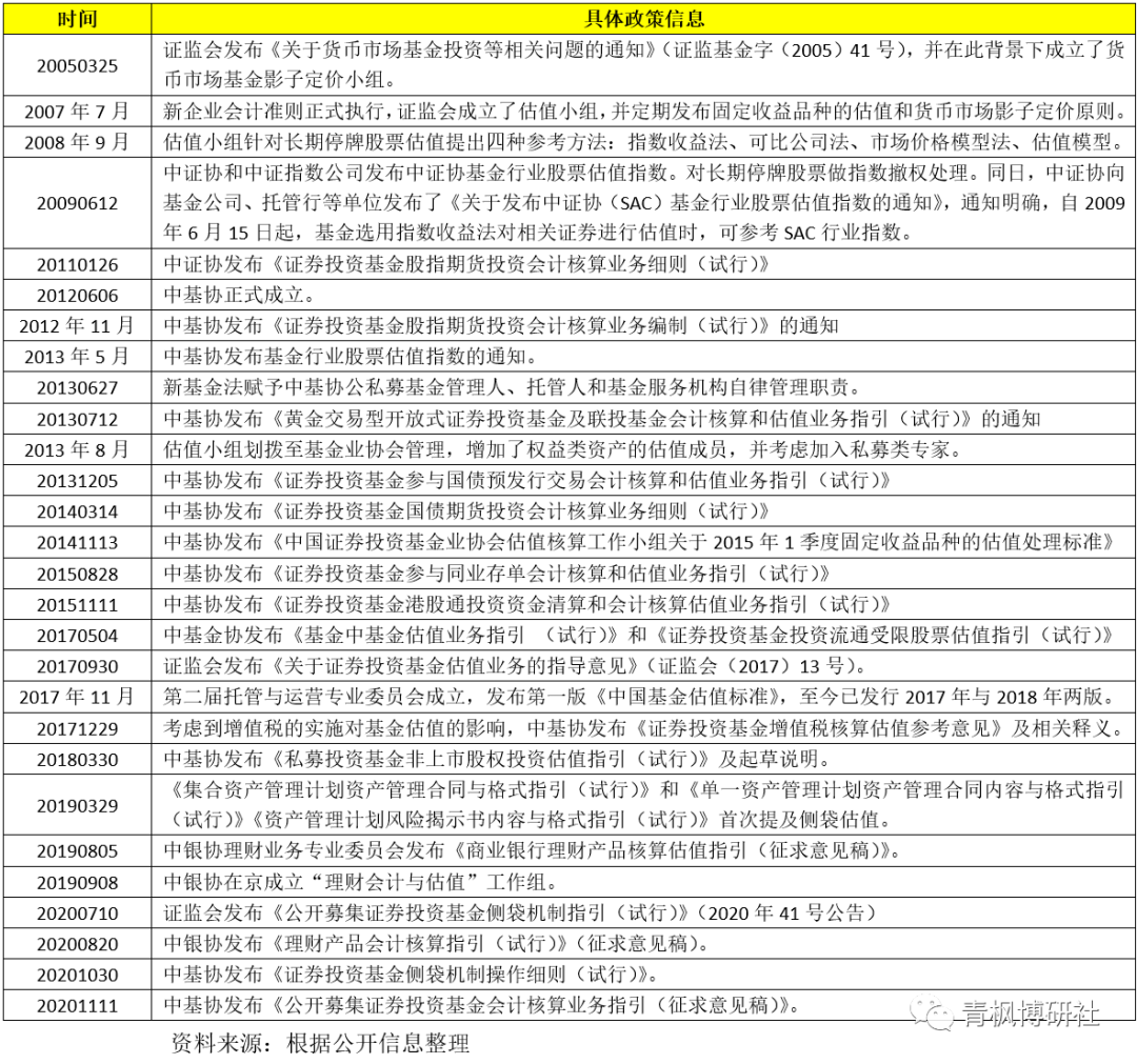 2、2012年中基協(xié)成立后,其嘗試解決了多種投資品種的估值方法,在基金估值的問題上可以說動作頻繁。同時中基協(xié)還自2017年開始每年發(fā)布《中國基金估值標準》,以期作為行業(yè)統(tǒng)一標準指引。