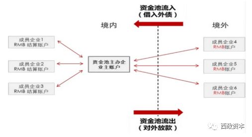 第二種:境內外均有一個資金池,然后進行跨境的資金劃撥。