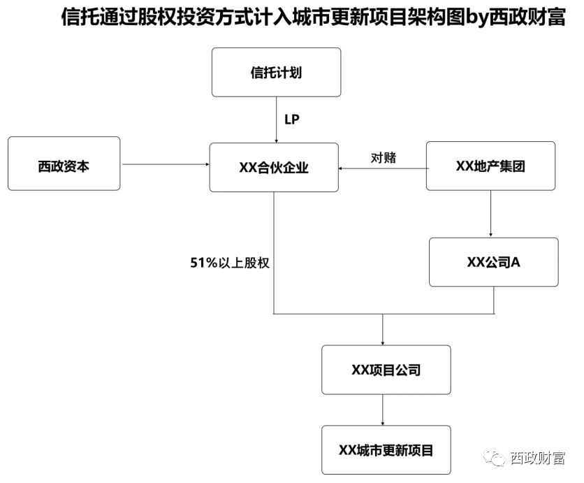 1. 信托計劃投資有限合伙LP份額(即1億)對有限責任公司SPV進行增資,部分進入實收資本,大部分進入資本公積。開發商則以對項目公司的債權(或債權+部分現金)對SPV進行出資。