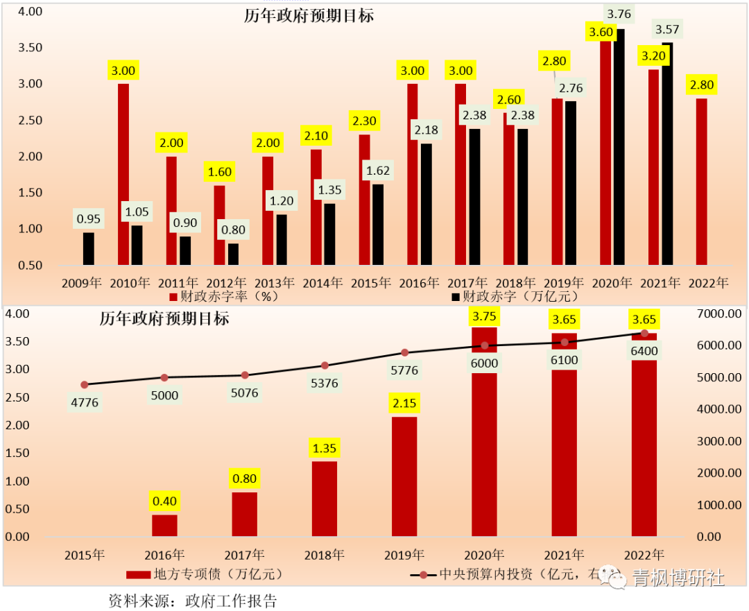 1、兩大指標偏謹慎:赤字率降至2.80%、專項債保持3.65萬億不變