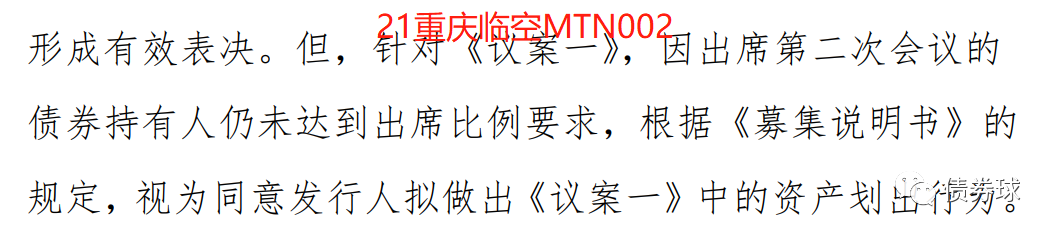 前兩天,重慶臨空因資產(chǎn)劃轉(zhuǎn)的事情, 18臨空投MTN001、21重慶臨空MTN001和21重慶臨空MTN002分別召開了持有人會議,并就持有人會議召開未達到有效條件進行了公告。協(xié)會產(chǎn)品就持有人會議召開未達到有效條件進行公告并非個例,但是在此前提下,個別議案依然可以執(zhí)行卻較為少見。