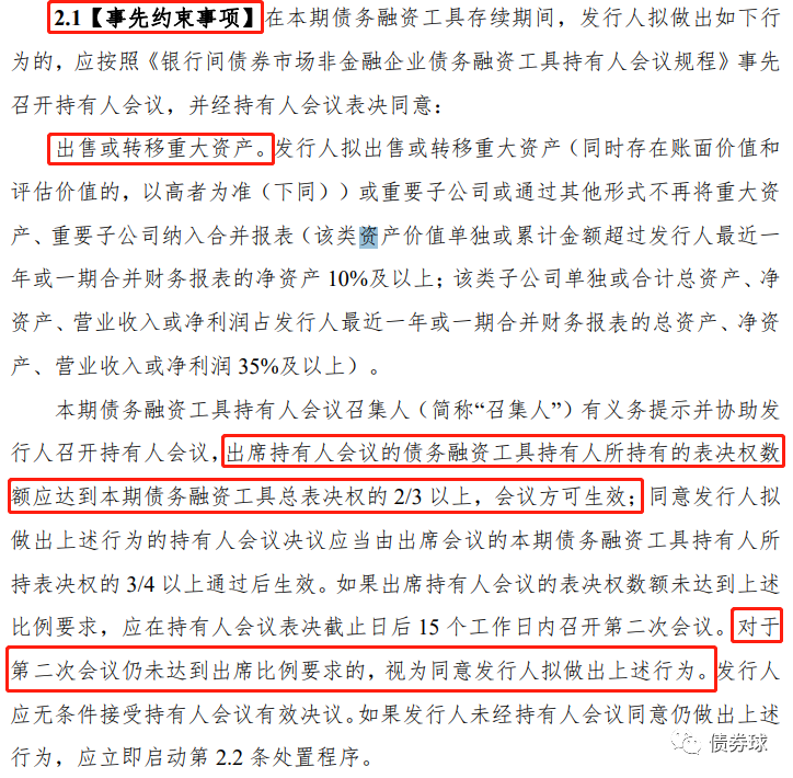 根據(jù)相關(guān)債券《募集說明書》的約定,如果第二次會議的債券持有人仍未達到出席會議比例要求,則視為投資人同意發(fā)行人擬做出的資產(chǎn)劃出行為。發(fā)行人就此事項已經(jīng)連續(xù)召開兩次會議,出席人數(shù)均未達到要求,因此,發(fā)行人可以根據(jù)募集說明書約定,執(zhí)行資產(chǎn)劃出的行為。