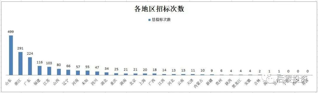 銀行招標次數前五的省份是山東、浙江、廣東、福建和江蘇,戶數前五的省份是山東、山西、廣東、河南和浙江,而披露的金額前五的省份是廣東、山東、浙江、江蘇和福建,山西和河南排第六和第七。總體來說除傳統成交活躍大省外,河南和山西等中部地區省份的銀行的債權招標力度也較大。