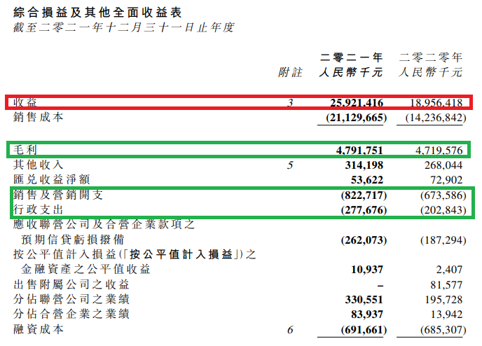 何以至此?我們看更多細節(jié),總的銷售成本從2020年的142.37億元,增至2021年的211.30億元。