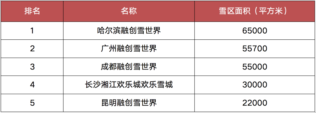 表:全國(guó)排名前五室內(nèi)滑雪場(chǎng)雪區(qū)面積