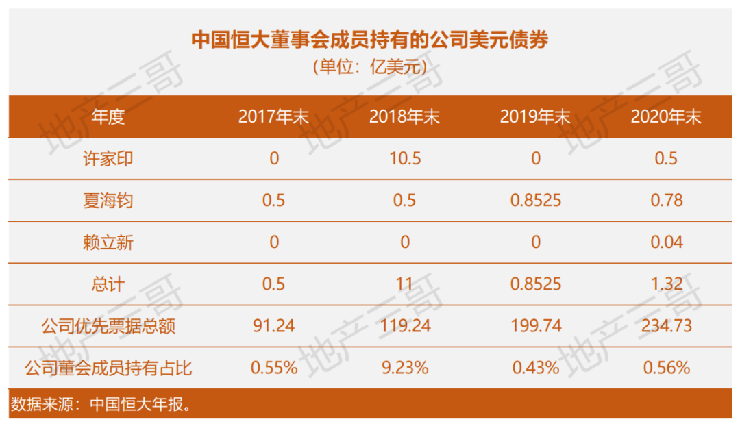 這在2018年報(bào)中也有記錄,歷年來(lái)恒大董事會(huì)成員持有的公司美元債券如下: