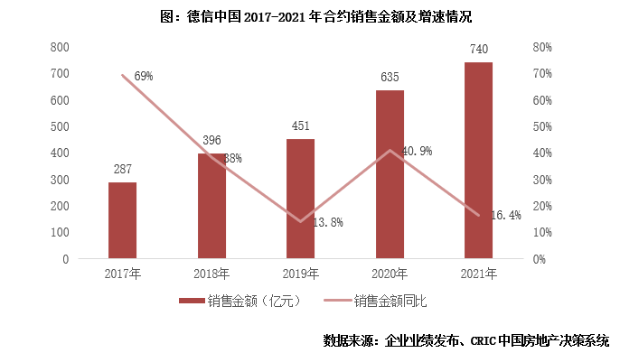 【未完成全年目標,標普將展望調(diào)至“負面”】2021年德信中國銷售金額739.8億元,同比增長16.7%,相較百強房企平均3.5%的降幅而言表現(xiàn)平穩(wěn)。未完成全年800億目標銷售,整體目標完成率約92.5%,優(yōu)于規(guī)模房企平均的88%。不過就7-12月銷售業(yè)績來看,德信共實現(xiàn)銷售額309.8億元,同比下降18.1%。標普將德信展望由“穩(wěn)定”下調(diào)至“負面”,標普表示對其展望調(diào)整的主要原因是認為德信中國的銷售情況仍將面臨壓力。