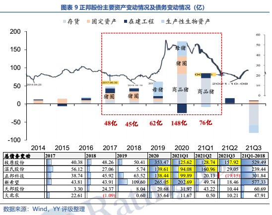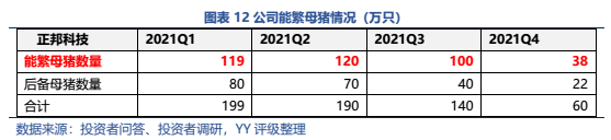 但,公司剛付出巨大成本更新的能繁母豬去化嚴(yán)重,截至2021年年底公司的能繁母豬從119萬(wàn)只已降至32萬(wàn)頭,所以即便新一輪豬周期開啟,也與正邦科技無(wú)關(guān)了…正邦可能面臨的將是景氣度上行、高價(jià)豬仔、無(wú)豬可養(yǎng)的局面。