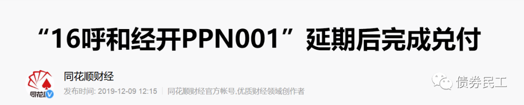 根據公開信息,2019年12月9日,“16呼和經開PPN001”在經過一個周末的技術性違約之后,最終以陸續兌付。