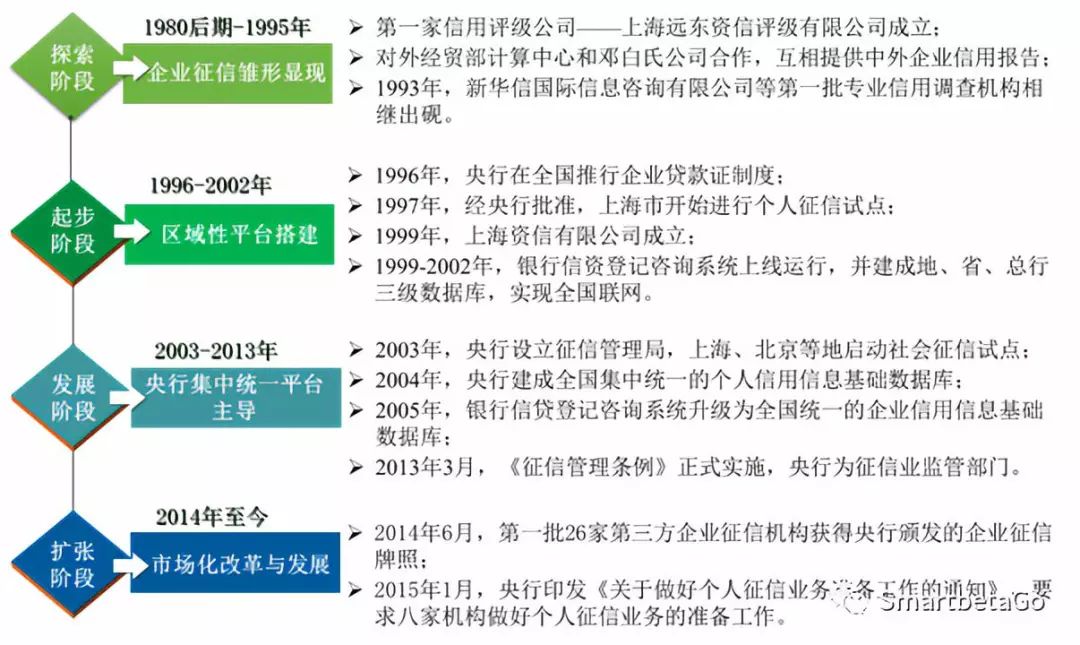 2014年,根據《征信業管理條例》、《征信機構管理辦法》及有關法律法規,中國人民銀行各分支機構開展的企業征信機構備案工作正式開始,企業征信開始走上規范化發展的道路。