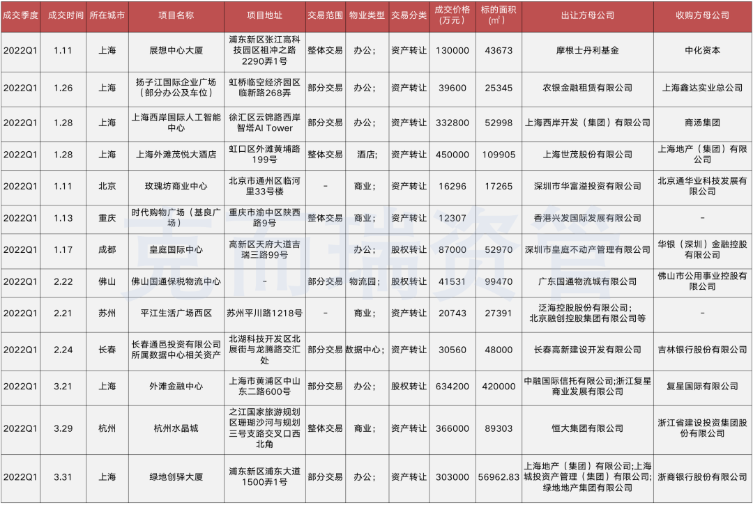 值得注意的是,2021年房企交易的更多為非核心資產,進入2022年一季度,逐漸出現部分核心資產成交案例。