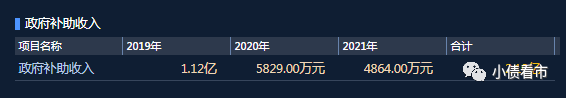 2019-2021年,云南水務(wù)分別獲得政府補(bǔ)助1.12億、5829萬元以及4864萬元,合計獲得2.19億補(bǔ)貼。