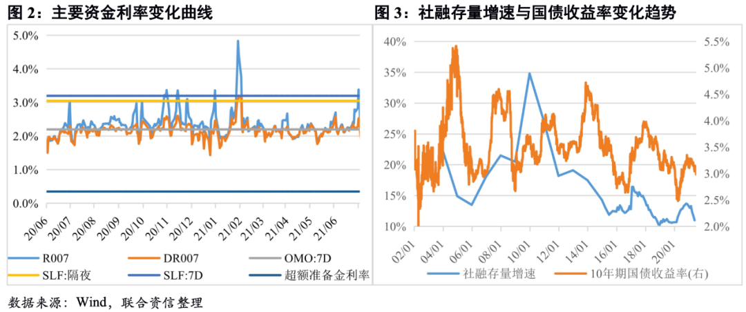 端午節后,跨季資金緊張,跨月資金利率上漲顯著,央行加大投放量以維持資金面平穩。季末資金面較為緊張,尤其是端午節后,各期限資金利率全線上行,銀行間7天回購利率(R007)一度超過7天常備借貸便利利率(SLF)。季末央行維護資金面意圖明顯,加大公開市場投放量,以維持跨季資金面穩定。整體看,6月央行公開市場凈投放總量為1000億元,較5月(凈回籠100億)明顯增加。
