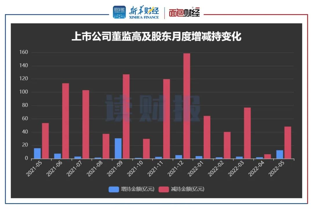 2022年5月,滬深兩市上市公司董監(jiān)高及其關(guān)聯(lián)人減持金額合計(jì)約48.27億元,涉及126家公司。
