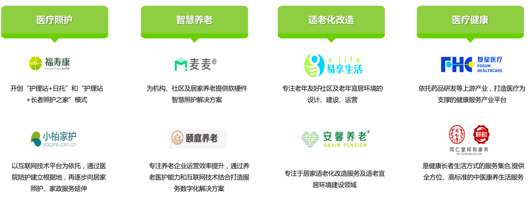 其他類企業專注養老產業鏈深度融合。如適老化改造、醫療照護、健康管理、醫療健康、養老用品、康復等細分領域縱深發展。