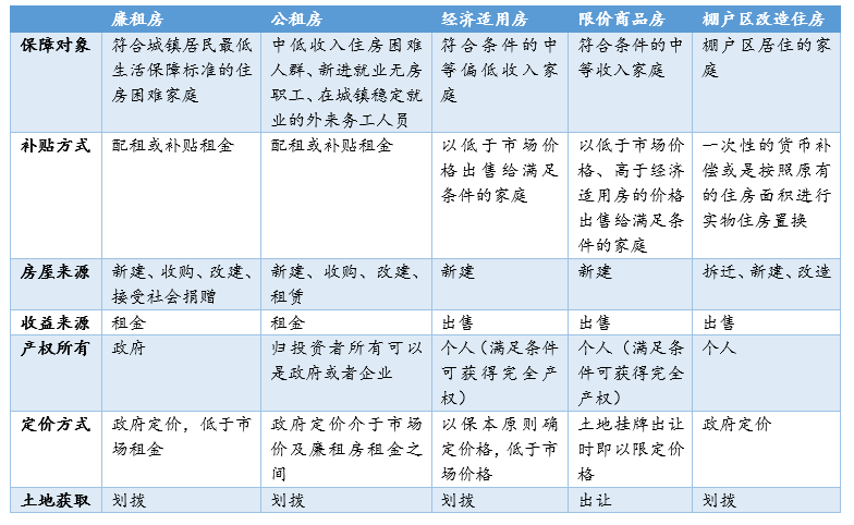 1保障房的分類