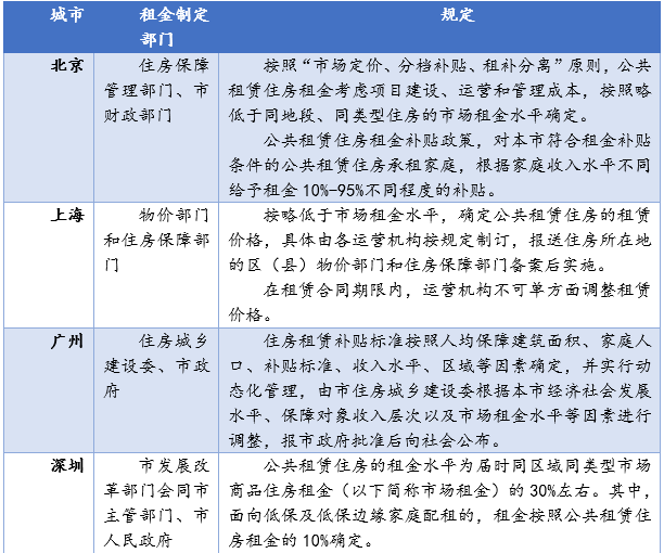 以北京市為例,北京市租金定價標準一般為周邊商品房租金的80%,租金一般為三年調整一次。但是隨著房價的增長,往后在推移5年,公租房租金就可能變為周邊商品房租金的60%甚至更低。