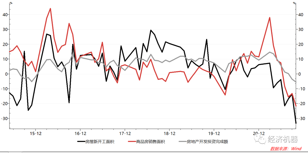 物量方面,房地產新開工和商品房銷量當月同比去年分別下降33%和21.6%,房地產投資額當月同比下降5.4%,降幅均明顯擴大(圖7)。