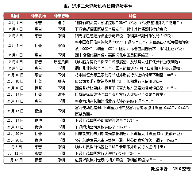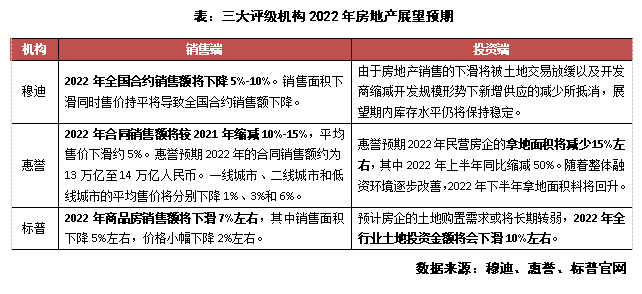 2022年伊始,三大評級機構惠譽、標普、穆迪分別對2022年的房地產行業發布了信用展望。