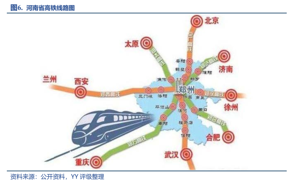河南鐵路通車?yán)锍叹尤珖?guó)第一,三橫五縱的鐵路網(wǎng)絡(luò)在此交匯,而鄭州作為京廣、隴海線的交匯點(diǎn),素有中國(guó)鐵路心臟之稱,因此河南的高鐵建設(shè)基本也是以鄭州為核心,延省內(nèi)各市鋪展而開,整體呈現(xiàn)米字型,有“橫”貫東西的徐蘭高鐵,“豎”連南北的京廣高鐵,“撇”望中原的鄭萬(wàn)高鐵,“捺”指江南的鄭合高鐵,以及“點(diǎn)”通西北的鄭太、鄭濟(jì)(尚未開通)高鐵。另外中歐班列(鄭州)輻射30多個(gè)國(guó)家130多個(gè)城市,加大了開放的力度。