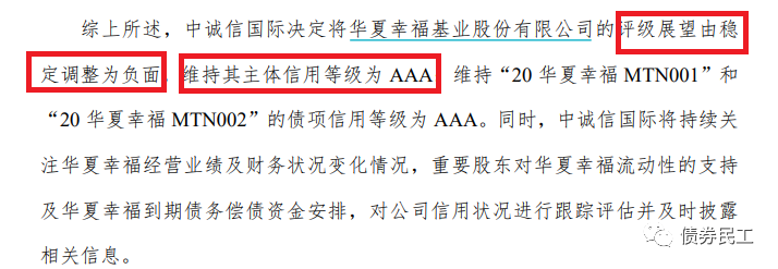 與此同時(shí),國(guó)內(nèi)信用評(píng)級(jí)機(jī)構(gòu)也對(duì)華夏幸福的評(píng)級(jí)進(jìn)行了調(diào)整。根據(jù)華夏幸福1月19日的公告,評(píng)級(jí)機(jī)構(gòu)中誠(chéng)信國(guó)際將公司的評(píng)級(jí)展望調(diào)整為負(fù)面,主體信用等級(jí)保持為AAA。本次評(píng)級(jí)展望調(diào)整為負(fù)面的主要原因包括銷售金額和回款金額下滑、債務(wù)規(guī)模攀升償債壓力較大、經(jīng)營(yíng)活動(dòng)凈現(xiàn)金流持續(xù)為負(fù)以及與平安資管的業(yè)績(jī)承諾完成難度較大等。