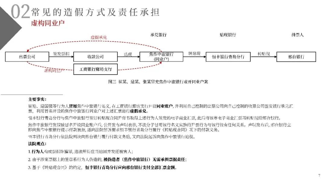 2. 由于涉案票據上的簽章系行為人偽造的, 被偽造者(焦作中旅銀行)無需承擔票據責任;