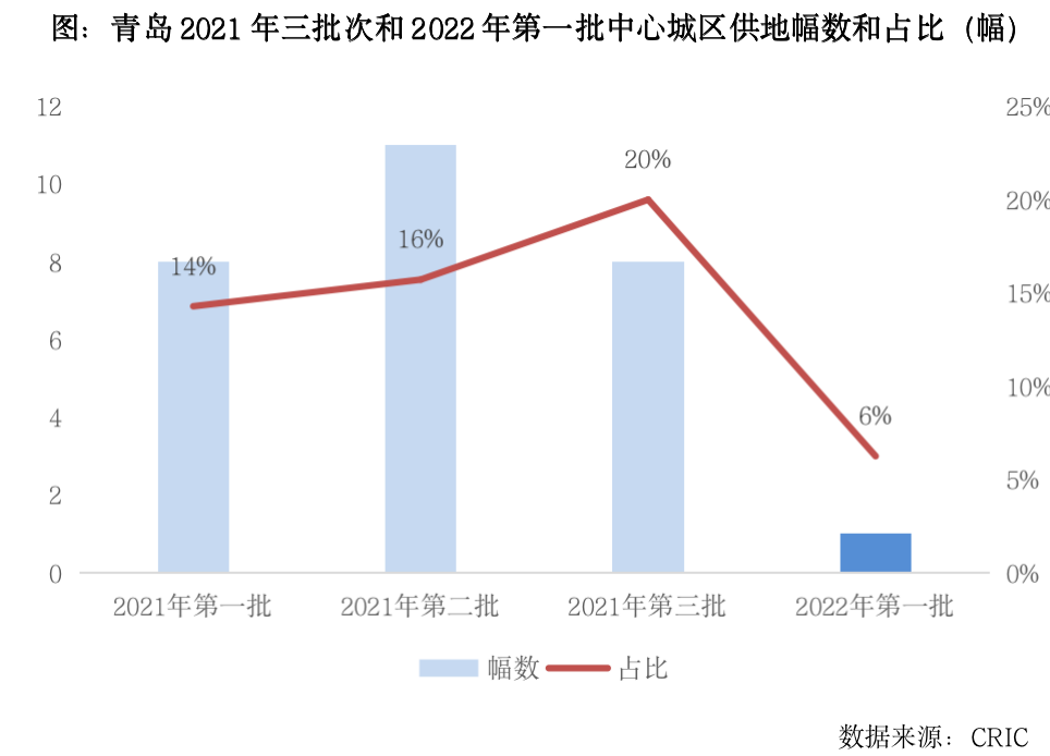 作為首個官宣調(diào)整集中供地批次為四批次的城市,青島首輪集中供地對市場的試探意味較為明顯:不僅供應規(guī)模較去年任意批次大幅縮減,供地質(zhì)量也明顯下滑,中心城區(qū)僅有1幅地出讓且還遭遇提前中止。最終,青島首輪集中土拍雖然熱度仍舊不高,但表現(xiàn)較去年二三輪明顯更加平穩(wěn)。