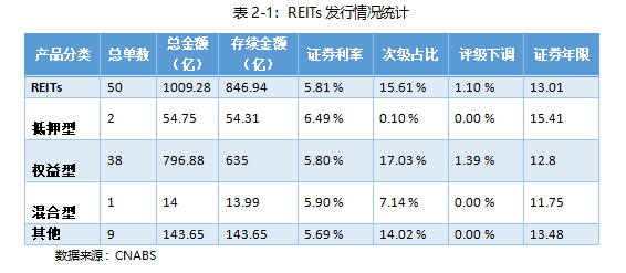 (1)截至2019年5月,REITs產品發行總量為50只, 發行金額為948.1251億元。
