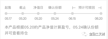預計可贖回日是6月15日到20日,假如你在6月15日發(fā)起贖回,那么到賬時間要到25號!整整10天!因為20號開放期結(jié)束后才開始進行份額確認。小編再多叨叨兩句,這個是一個月開的產(chǎn)品,首先在認購的時候資金就會占4天,贖回又要占10天,真要是當做流動性高的產(chǎn)品來投,怕不是個瓜。當然這個產(chǎn)品的月開就仿佛是個玩笑,小編下面會詳細說說。
