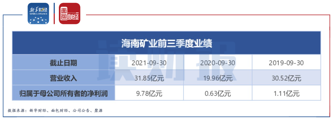 業(yè)績(jī)的大幅增長(zhǎng)是海南礦業(yè)股價(jià)上漲的有力支撐。2021年前三季度,公司實(shí)現(xiàn)營(yíng)業(yè)收入31.85億元,同比增長(zhǎng)59.6%;實(shí)現(xiàn)歸母凈利潤(rùn)9.78億元,大幅增長(zhǎng)逾14倍;扣除非經(jīng)常損益的歸母凈利潤(rùn)為6.75億元,同比增長(zhǎng)逾5倍,非經(jīng)常損益主要系公司所持交易性金融資產(chǎn)市值上升導(dǎo)致的公允價(jià)值變動(dòng)收益及處置股票產(chǎn)生投資收益。