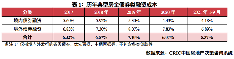融資成本:2021年截至9月100家典型房企新增債券類1融資成本5.37%,較2020年下降0.70個百分點(diǎn),其中境外債券融資成本達(dá)6.89%,下降0.94個百分點(diǎn),境內(nèi)債券融資成本4.18%,較2020年下降0.26個百分點(diǎn)。單月來看,9月房企融資成本5.55%,環(huán)比上升0.61個百分點(diǎn),同比上升0.16個百分點(diǎn)。其中境外融資成本7.32%,環(huán)比下降0.49個百分點(diǎn),持續(xù)維持高位;境內(nèi)融資成本3.49%,環(huán)比上升0.19個百分點(diǎn)。房企融資利率在2.65%-12.50%間,境內(nèi)發(fā)行債券有旭輝、遠(yuǎn)洋、越秀等企業(yè)發(fā)行,利率基本在5%以下,而境外發(fā)債的企業(yè)多家企業(yè)的債券發(fā)行融資成本達(dá)12.50%,企業(yè)融資持續(xù)分化。