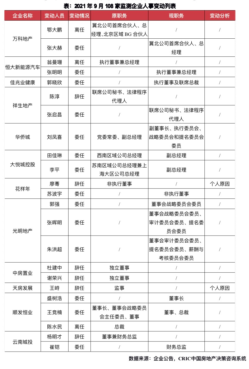 9月,受上月年中業(yè)績發(fā)布余波的持續(xù)影響發(fā)酵,房企高層人事動態(tài)信息數(shù)量較上月明顯上升,從108家監(jiān)測企業(yè)的人事變動情況來看,企業(yè)高層變動頻率明顯較前兩月有所提升。