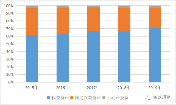 在資產配置方面,挪威主權財富基金主要配置三大類資產,其中權益資產主要占比為71%左右,對于權益投資一致維持在60%以上的占比,體現了較大的風險偏好,截至2019年末持有的重點股票包括蘋果、微軟、雀巢、亞馬遜、殼牌、阿里巴巴、臉書等全球大型機構,涉及行業涵蓋了高科技、能源、消費等領域,2019年高科技股票表現最為搶眼,是其投資收益最主要的來源。固定收益類資產占比約為26%,這其中政府債券投資占比最大,為57%,其次是企業債券,占比為24%。不動產投資占比約為3%,主要參與投資了寫字樓、零售物業、物流地產等領域,其中主要還是以寫字樓為核心,占比達到57%,不過2019年先后出售了倫敦、法蘭克福的多處寫字樓,加大了對于物流地產的投資力度。從區域分布看,挪威主權財富基金持有的各類資產中,美國資產占比為39.8%,日本資產占比為8.7%,英國資產占比為8.1%,德國資產占比為5.7%,近年開始加大對于新興市場國家的投資,對于中國資產的投資占比為3.1%,排名各國的第七位。