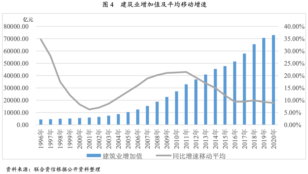 展望未來,面對經(jīng)濟下行壓力,國家宏觀調(diào)控政策早已摒棄“大水漫灌”式的投資和貨幣刺激,而是著眼于提高經(jīng)濟增長質(zhì)量。建筑施工兩大主要下游行業(yè)(房地產(chǎn)和基礎(chǔ)設(shè)施領(lǐng)域)受到的影響非常顯著,監(jiān)管對于房地產(chǎn)行業(yè)風(fēng)險出清的目標(biāo)明確,對于政府債務(wù)管控力度不減。2020年以來,房地產(chǎn)企業(yè)信用風(fēng)險逐漸暴露,對建筑施工企業(yè)的現(xiàn)金流形成很大壓力,這種產(chǎn)業(yè)鏈信用風(fēng)險傳導(dǎo)對行業(yè)內(nèi)尾部企業(yè)帶來的信用影響尤其值得關(guān)注。