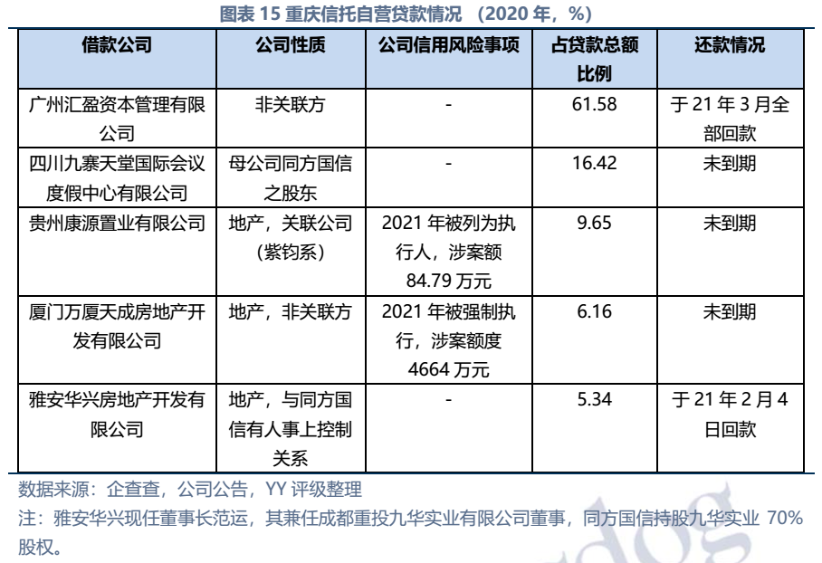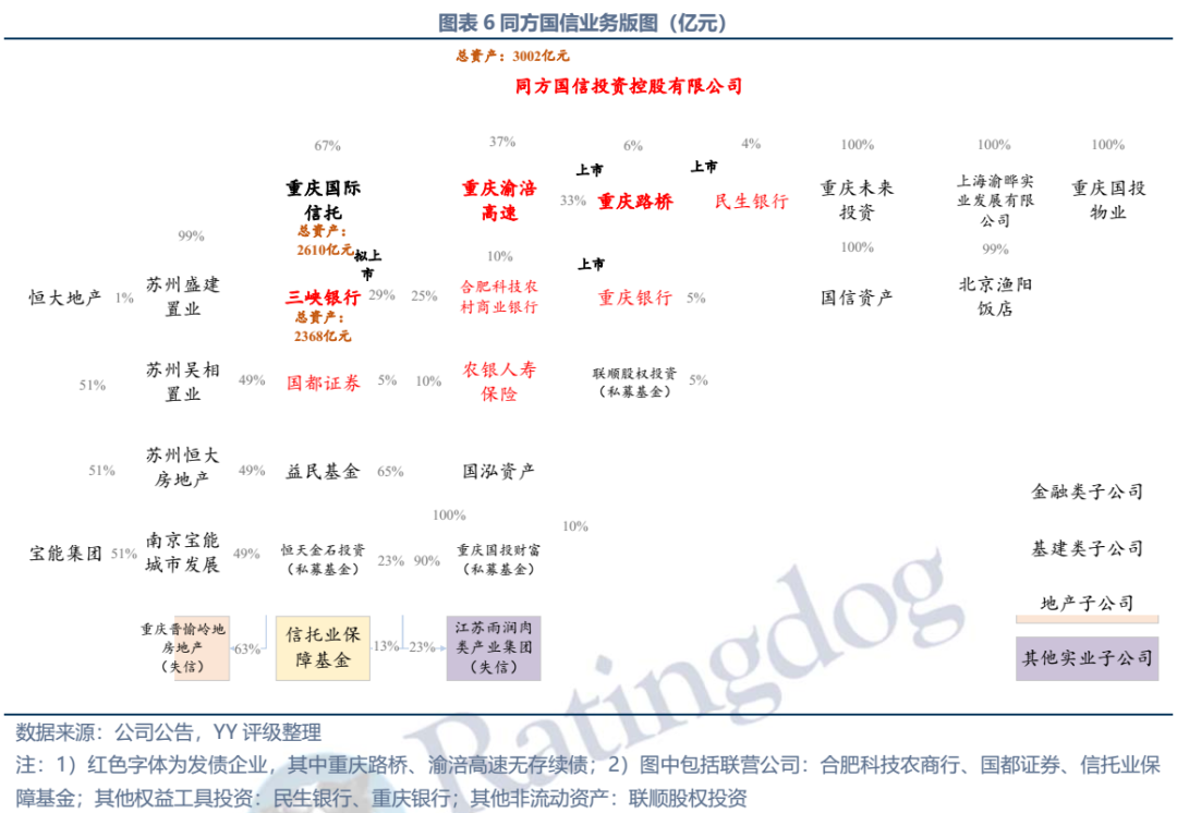 就子公司經(jīng)營而言,旗下的重慶信托2020年信托管理規(guī)模超2000億元,受托報(bào)酬/信托資產(chǎn)之比0.007,均處國內(nèi)民營信托行業(yè)前列,歷史風(fēng)控能力優(yōu)異,但受2021年房企風(fēng)險(xiǎn)釋放等因素影響,2020年自營業(yè)務(wù)關(guān)注率迅速上升(5.72%,但仍低于同業(yè)平均),信托資產(chǎn)踩雷廈門萬廈天成、寶能。三峽銀行近幾年也有上市動(dòng)作。三峽銀行除IPO補(bǔ)血存較大不確定性外,目前來看貸款板塊風(fēng)險(xiǎn)控制較好。不過需關(guān)注其作為信托子公司,投資板塊信托產(chǎn)品、資管計(jì)劃等中高風(fēng)險(xiǎn)品種配置比例達(dá)28%,也潛藏一定風(fēng)險(xiǎn)。基礎(chǔ)設(shè)施板塊表現(xiàn)較弱,但體量不大(路橋、高速兩家子公司2020年?duì)I收合計(jì)僅3.3億元),對同方國信的影響較小。同方國信子公司業(yè)務(wù)經(jīng)營存在一定風(fēng)險(xiǎn),但整體較穩(wěn)健。
