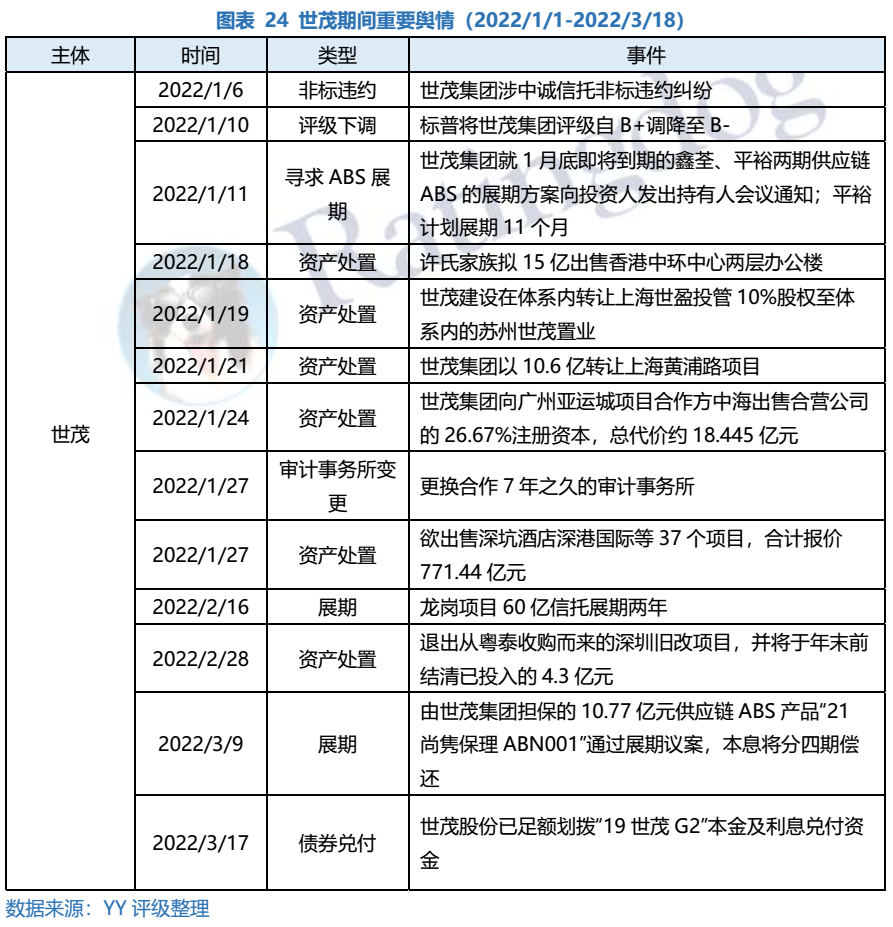 具體來看,熱點(diǎn)主體方面,世茂一方面尋求金融機(jī)構(gòu)支持,對(duì)期間內(nèi)到期的ABS及信托進(jìn)行展期,另一方面積極處置資產(chǎn)回籠資金。3月17日,世茂股份足額劃轉(zhuǎn)“19世茂G2”本息兌付資金,表明公司保公開債兌付的姿態(tài)。
