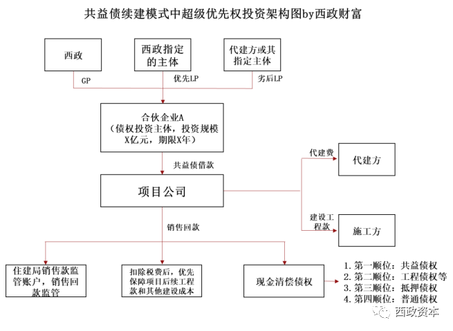 1. 投資架構:西政(GP)與其指定的主體(優(yōu)先級LP)及代建方或其指定的主體(劣后級LP)共同成立合伙企業(yè)A作為超級優(yōu)先權投資主體,優(yōu)先級LP和劣后級LP按7:3的比例出資,總出資額度不超過約定金額。