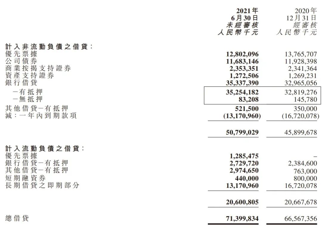 其中銀行及其他借款占比最多,為415.63億元、公司債券約116.83億,其他還有短期融資券、商業(yè)按揭支持證券、資產(chǎn)支持證券、優(yōu)先票據(jù)等。