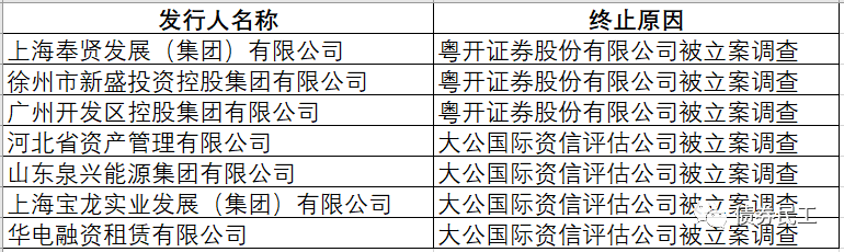 此前的2021年9月30日,中國證監(jiān)會在官網(wǎng)上披露7只小公募公司債券中止。從中止原因來看,其中4家發(fā)行人是因?yàn)榇蠊珖H資信評估公司被立案調(diào)查。目前證監(jiān)會尚未披露最終的調(diào)查結(jié)果。