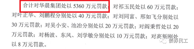 根據(jù)wind披露的公開信息,中國證監(jiān)會于2021年4月20日分別向華晨汽車集團控股有限公司和永城煤電控股集團有限公司下發(fā)了《行政處罰事先告知書》(處罰字[2021]24 號)、處罰字[2021]25 號)),分別給予兩家公司罰款5630萬元和300萬元!